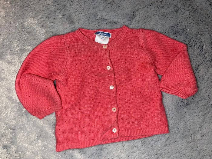 Gilet maille jacadi 6 mois rose corail Très joli mais petite tache manche voir photos
