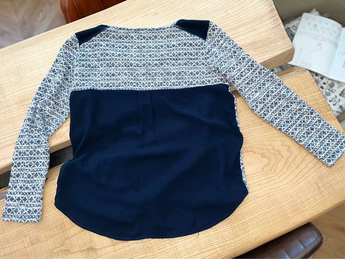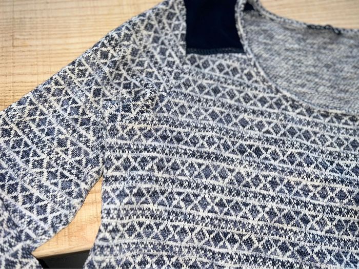 Pull femme marque Patrice breal Bi matière Bleu marine À motifs Taille 1 En très bon état peu porté