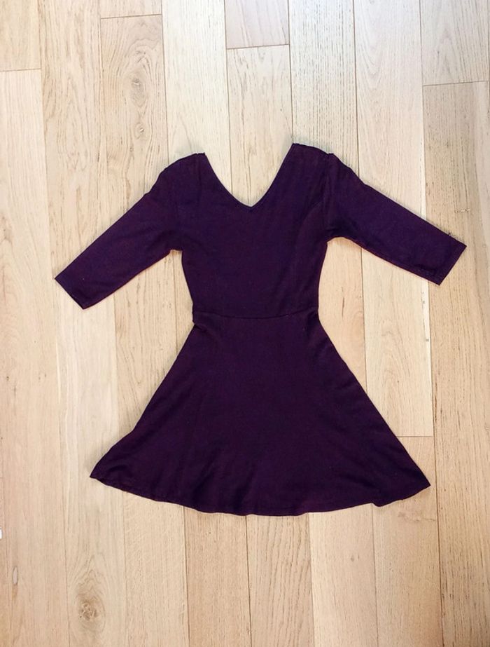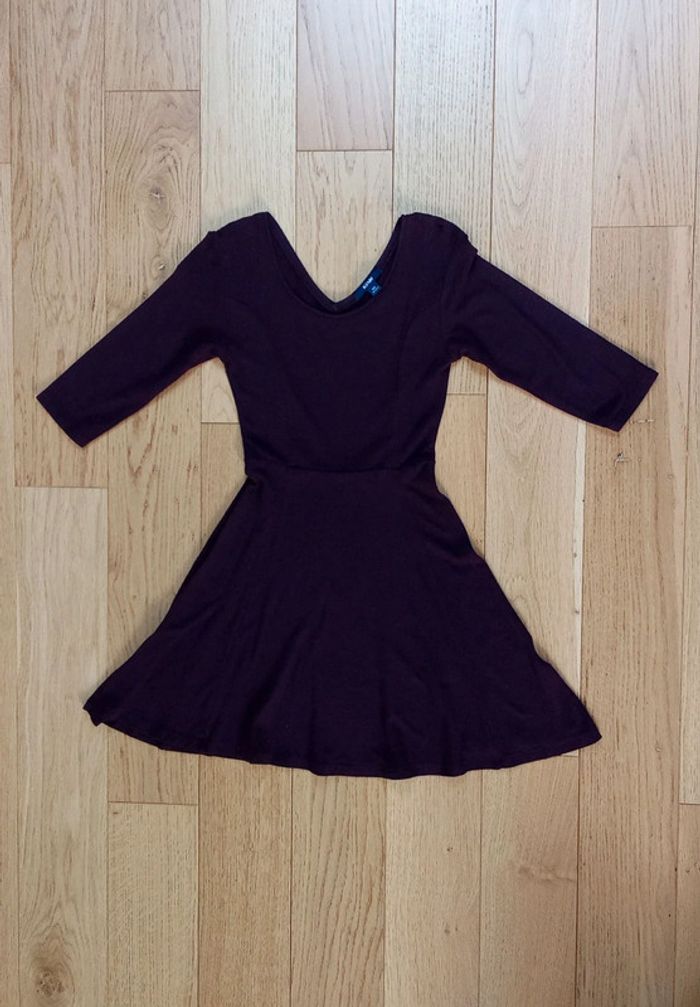 Je vends une robe patineuse en taille 10 ans Manches 3/4 Matière extensible Étiquette composition coupée Coloris prune #cropine_10ans_fille