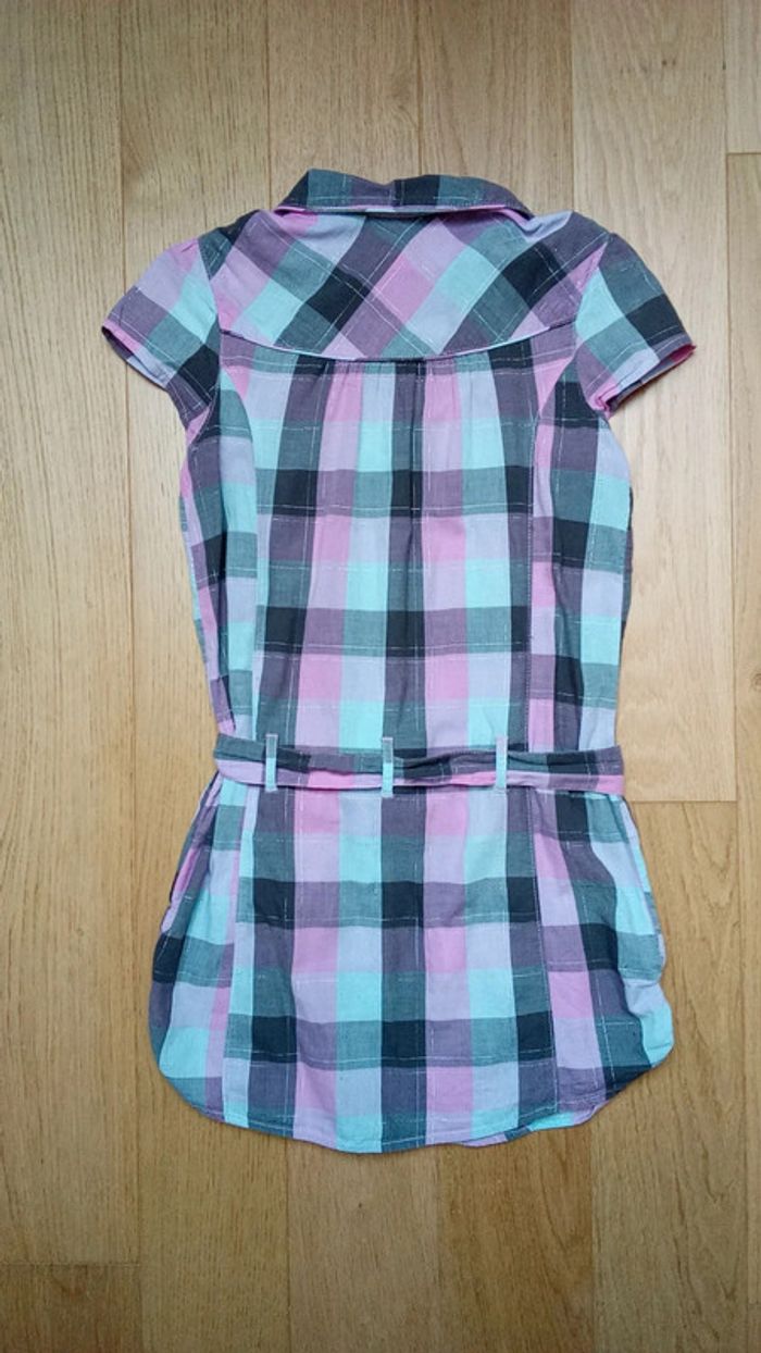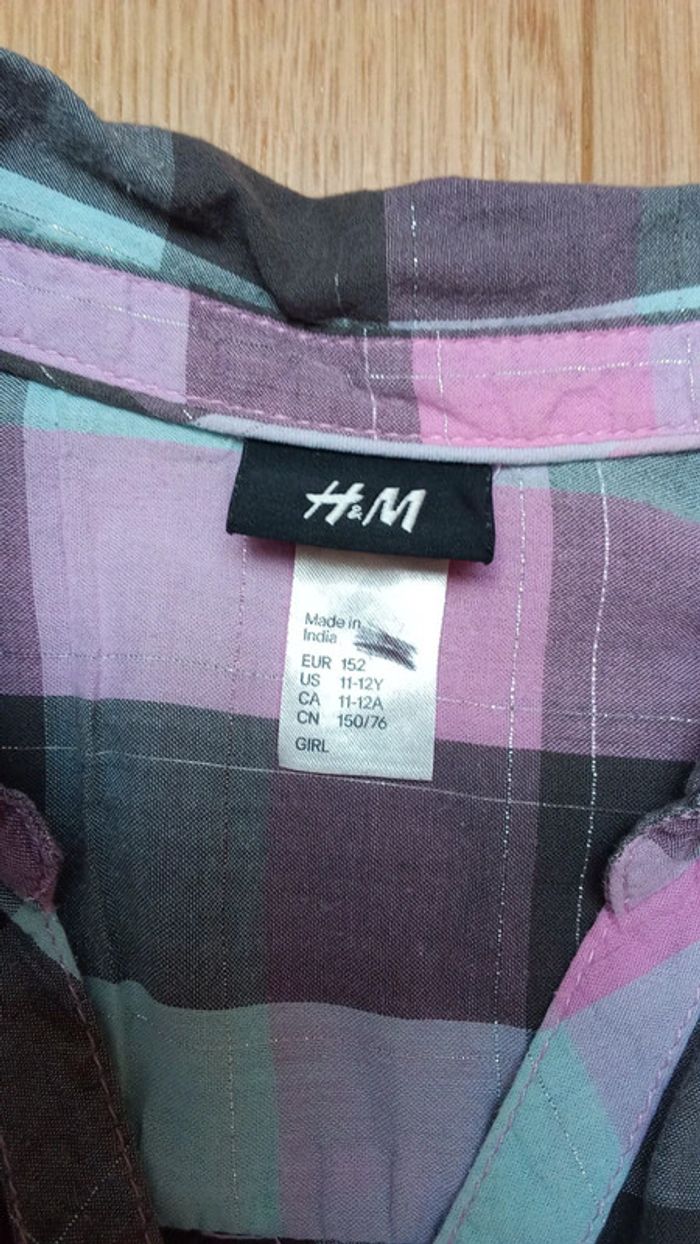 Je vends une robe de marque H&M en taille 12 ans Fronces en bas de chaque côté Fermeture par boutons pression 2 poches poitrine Fil argenté Ceinture à nouer amovible Petite tâche en bas derrière (voir photo 4) #cropine_12ans_fille