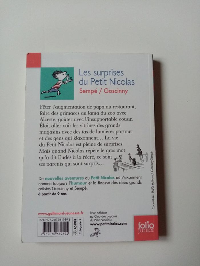 Je vends le livre Les surprises du Petit Nicolas Volume 5 de la série Les histoires inédites du Petit Nicolas Collection Folio junior Coins un peu abîmés Couverture légèrement pliée #cropine_livres