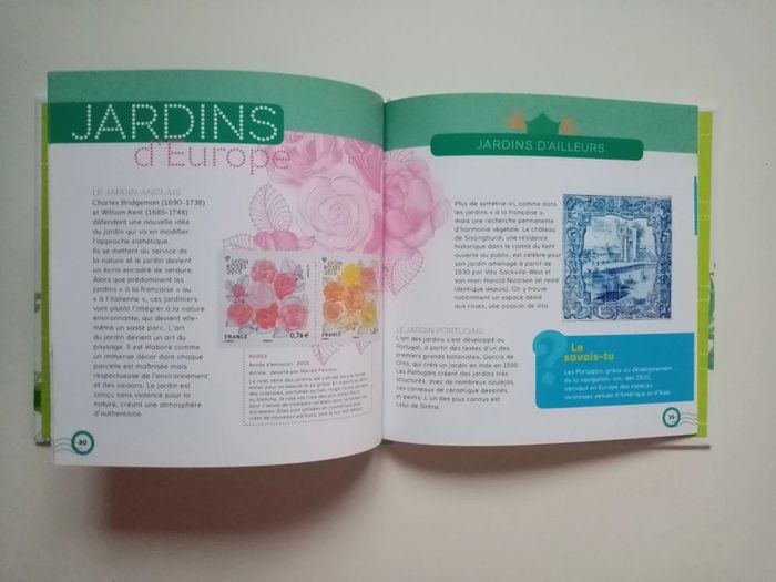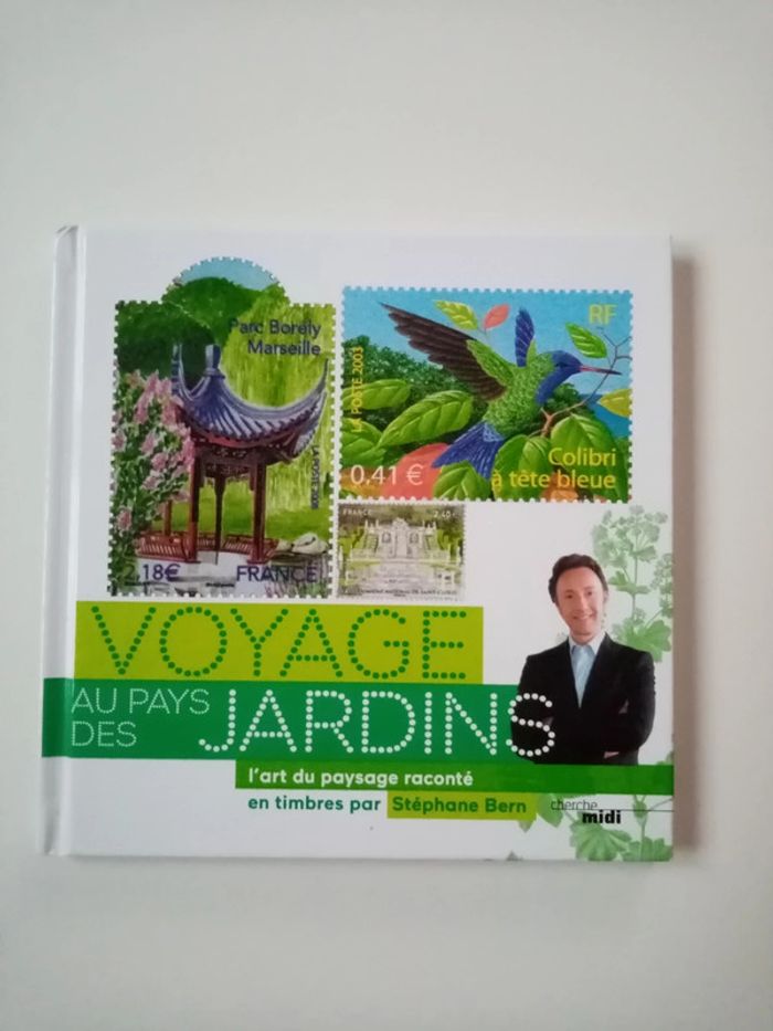 Je vends le livre Voyage au pays des jardins L'art du paysage raconté en timbres par Stéphane Bern Editions cherche midi 3 timbres inclus Emplacement prévu pour collection de timbre en fin de livre #cropine_livres