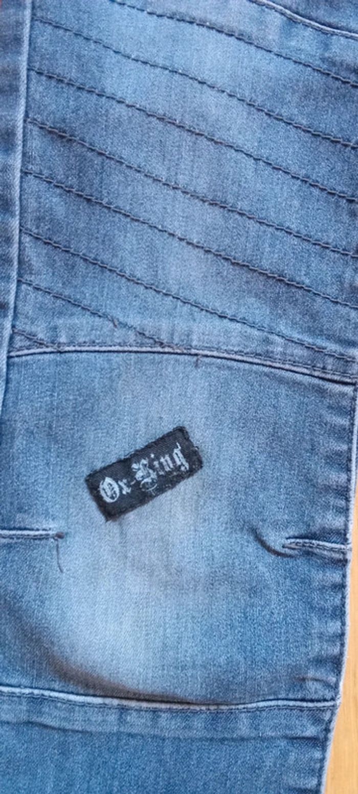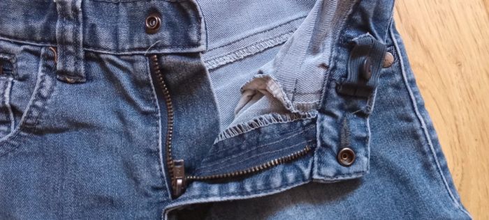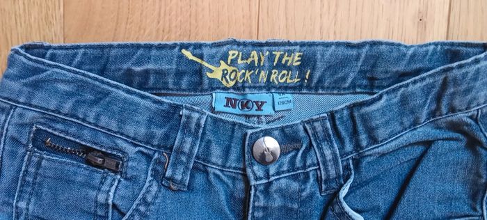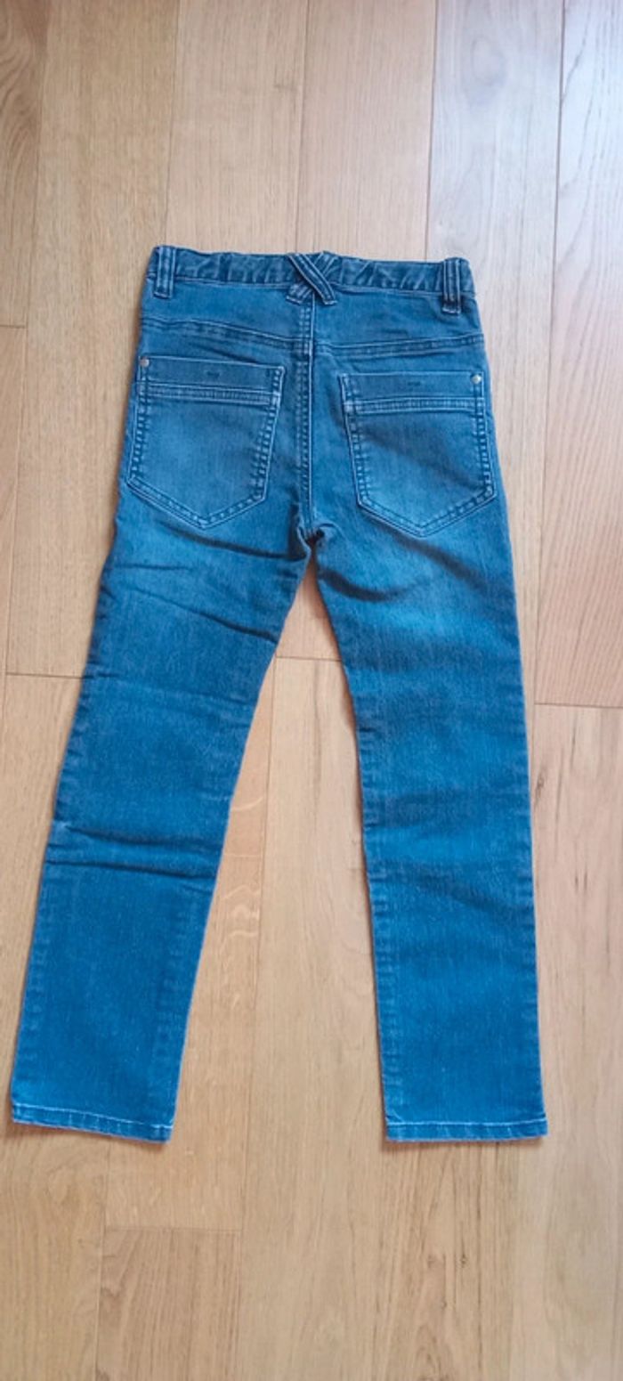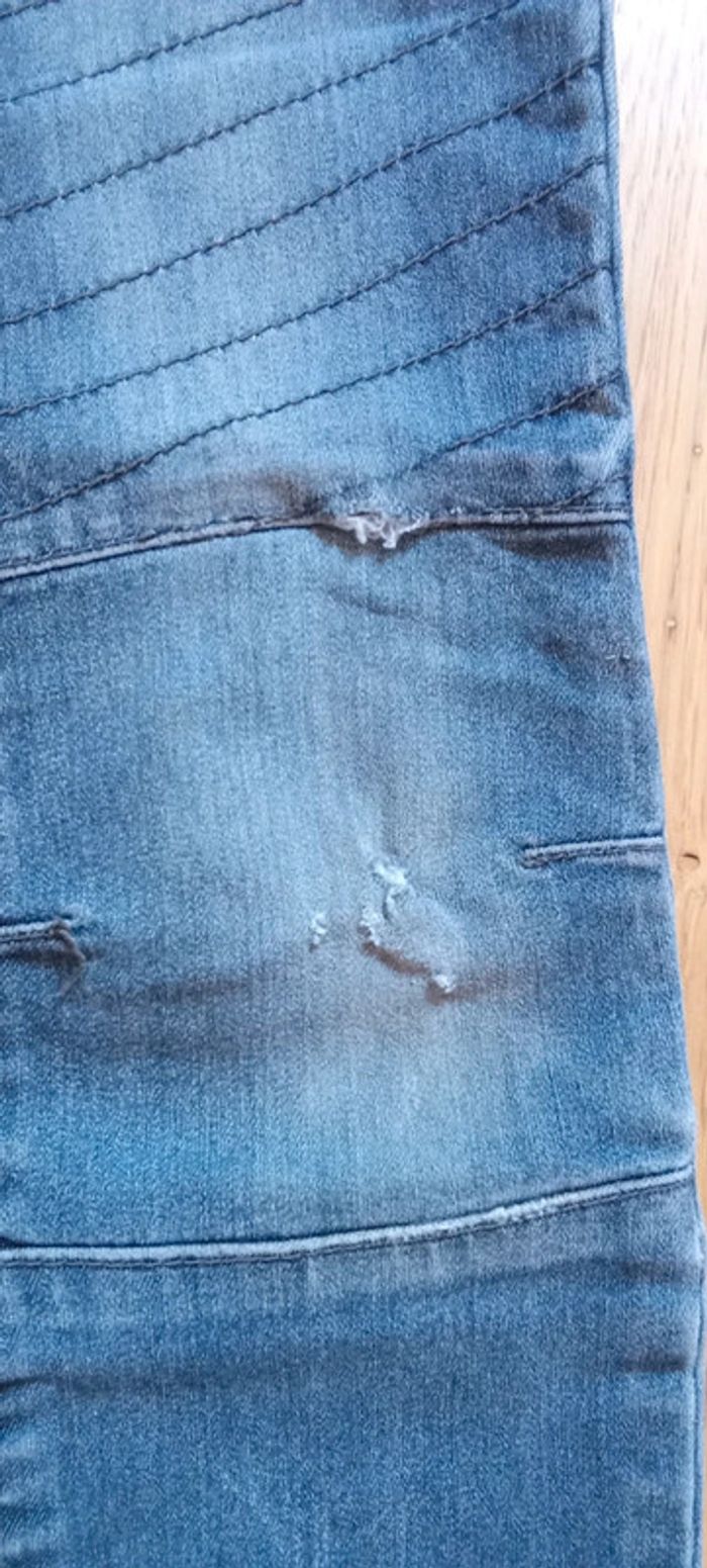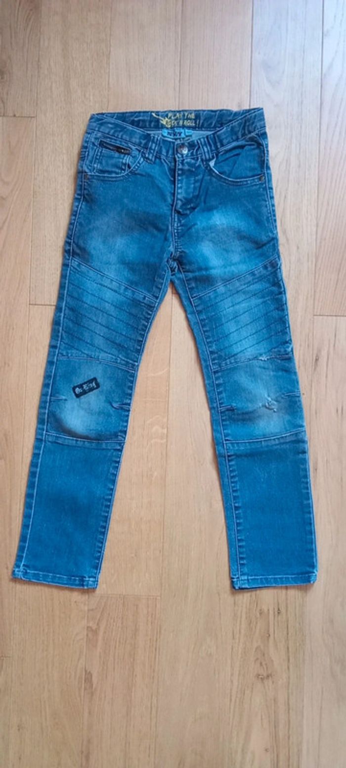 Je vends un jean en taille 8 ans Fermeture par bouton pression Taille ajustable par élastique Une jambe rapiécé, l'autre trouée #cropine_8ans_garçon