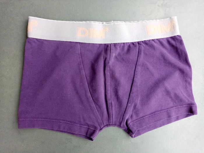Je vends un lot de 2 boxers de marque Dim en taille 8 ans Étiquettes effacées Initiale inscrite au dos de chaque étiquette #cropine_8ans_garçon