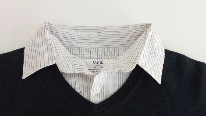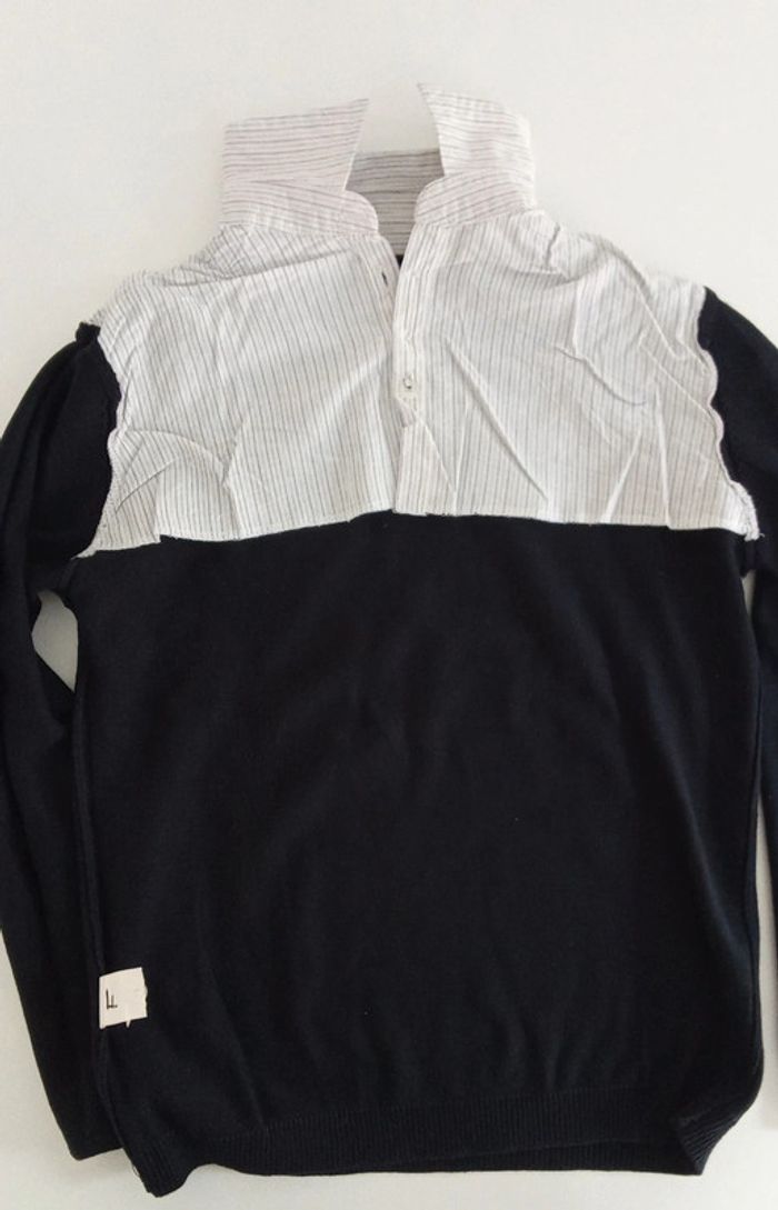 Je vends un pull avec col de chemise intégré en taille 10 ans initiales inscrite s sur les étiquettes Un bouton de rechange sur l'étiquette Très peu porté #cropine_10ans_garçon