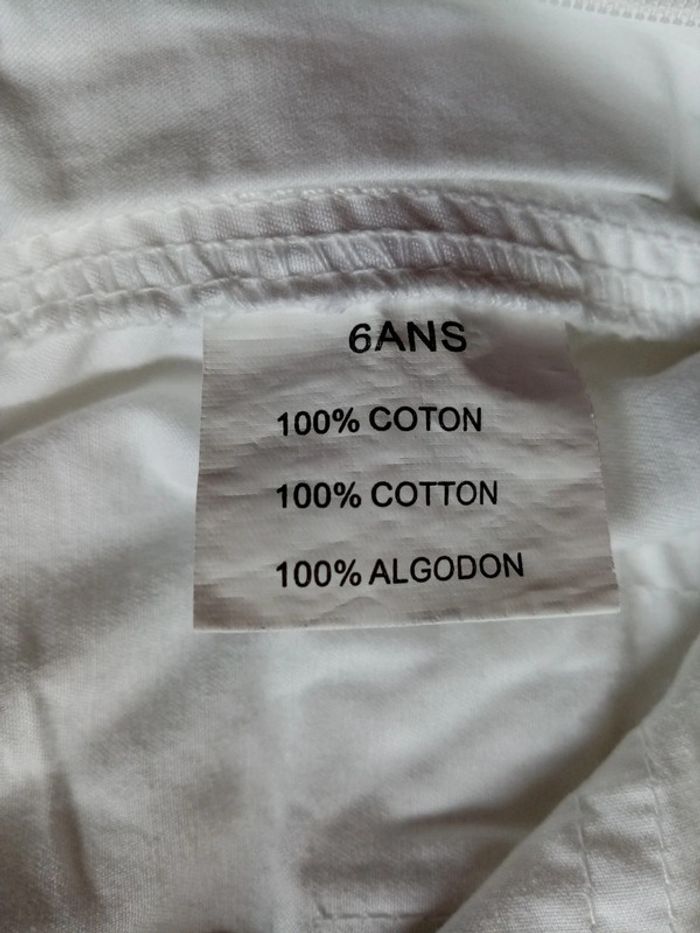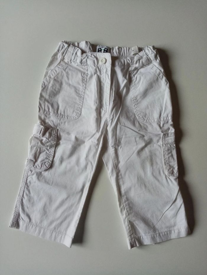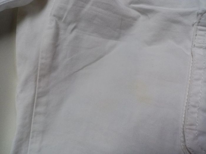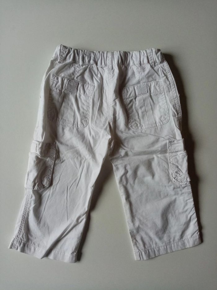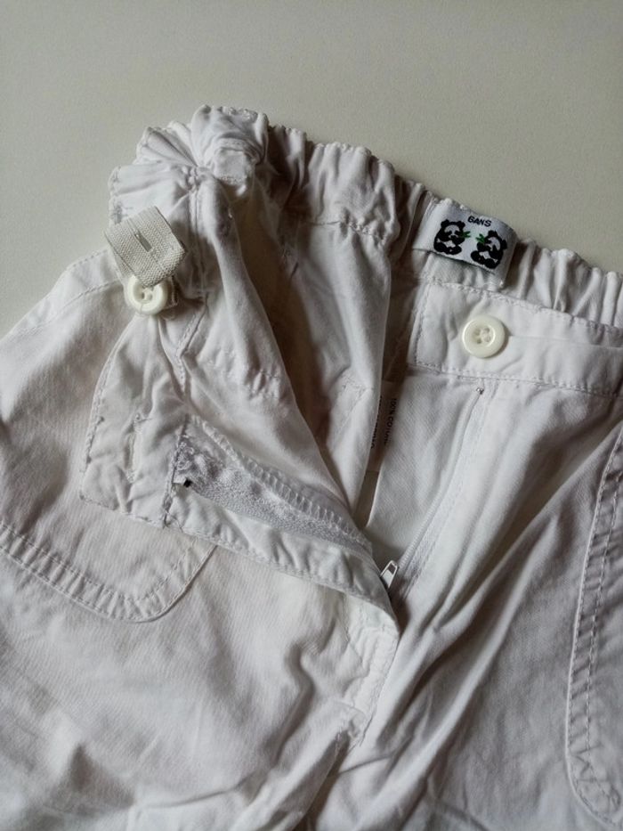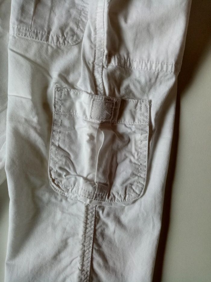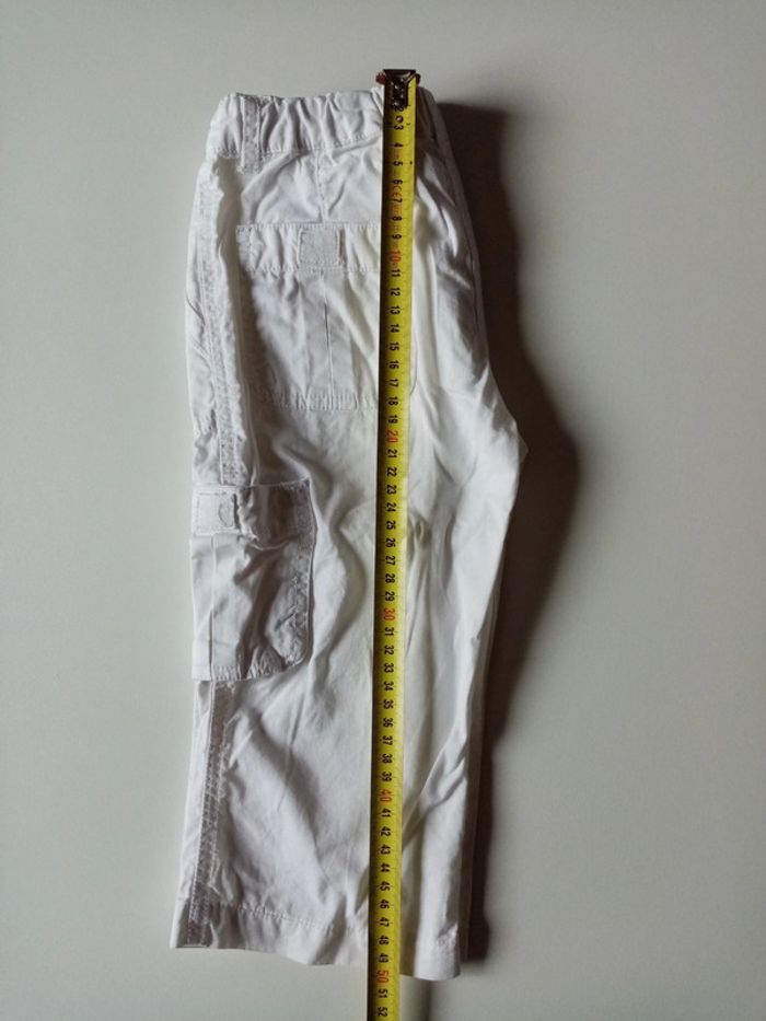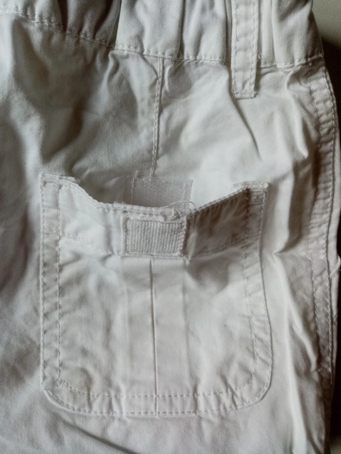 Je vends un pantacourt blanc en taille 6 ans Taille ajustable par élastique Poches sur le côté et derrière à scratch Plusieurs tâches sur une jambe (photos 8 et 9) #cropine_6ans_garçon