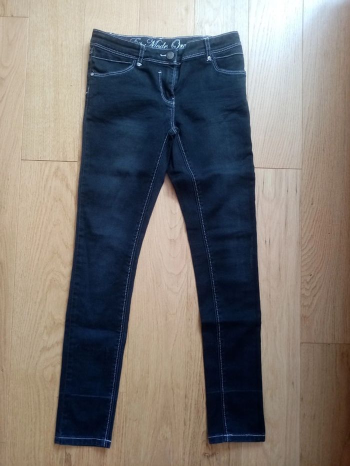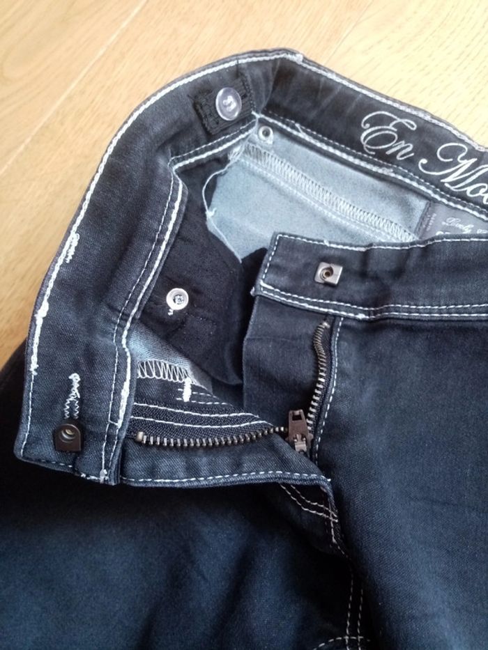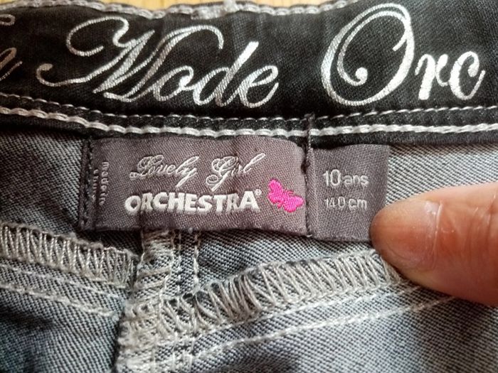 Je vends un jean de marque Orchestra en taille 10 ans Fermeture par agrafe Taille ajustable par élastique Marques blanches au niveau d'1 poche arrière (photo 6) Trace usure l'arrière d'1 jambe (photo 8) Marques en bas de chaque jambe car le jean a été porté retourné #cropine_10ans_fille
