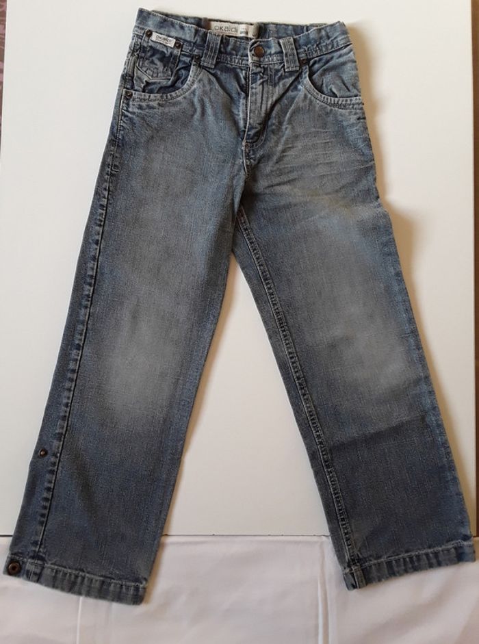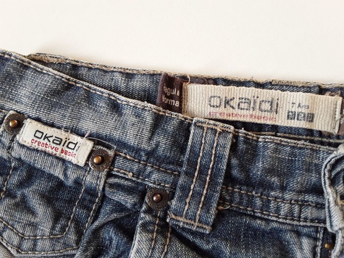 Je vends un jean de marque Okaïdi en taille 7 ans Le jean peut se transformer en pantacourt en retournant le bas Taille ajustable Usure en bas du jean visibles sur photo #cropine_7ans_garçon