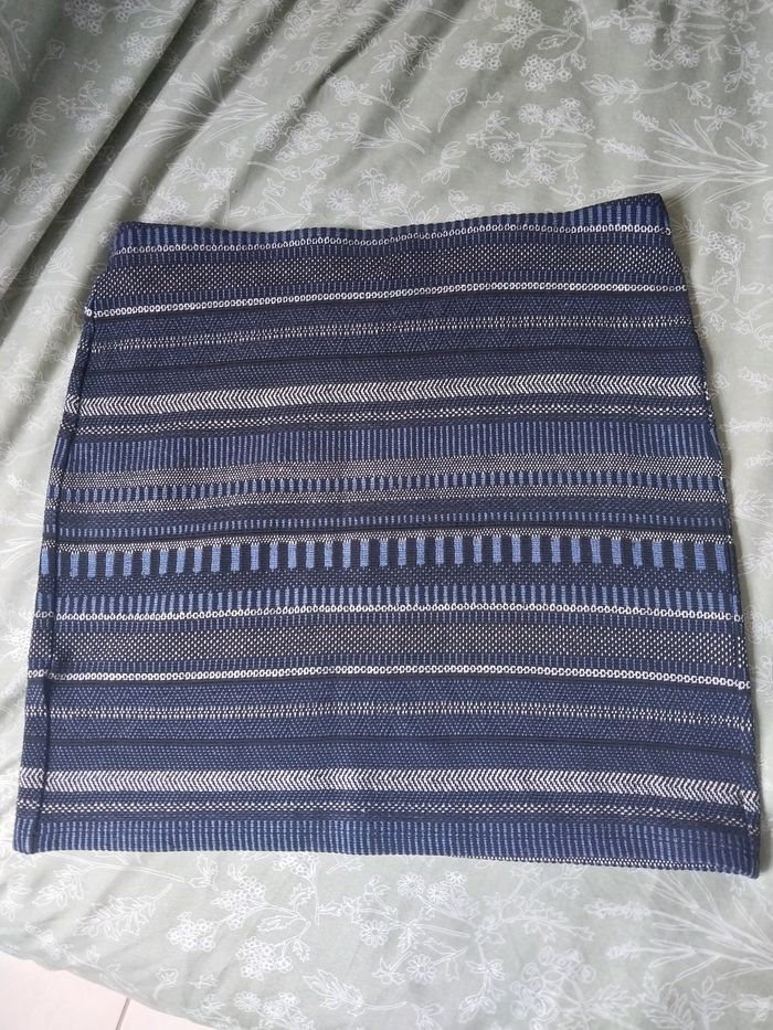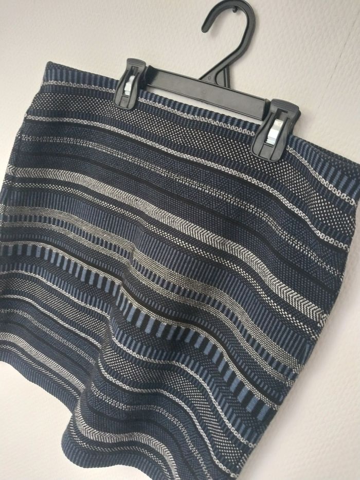 Motifs graphiques bleu marine, blanc et noir. Coupe droite et extensible, idéale pour un look chic ou casual ! 🔹 Taille à plat : 38 cm 🔹 Longueur : 40 cm 🔹 Taille indiquée : non précisée, convient à un 36-38 selon morphologie En très bon état, peu portée. #promod #jupe #chic #boho #motif #marine #modefemme #taille38 #été #casual