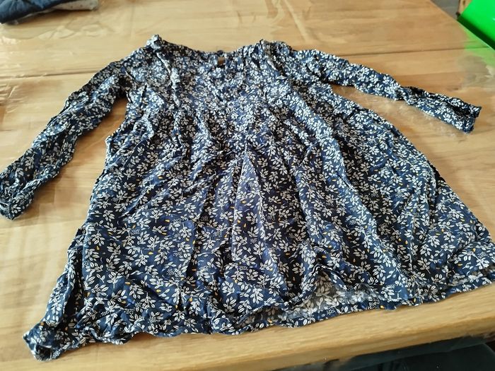 Robe manches longues bleu fleurie blanche marque Gémo taille 4 ans