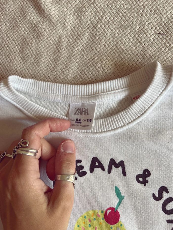 Sweat-shirt mixte Zara blanc motif glace 116 - photo numéro 3