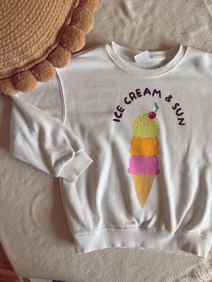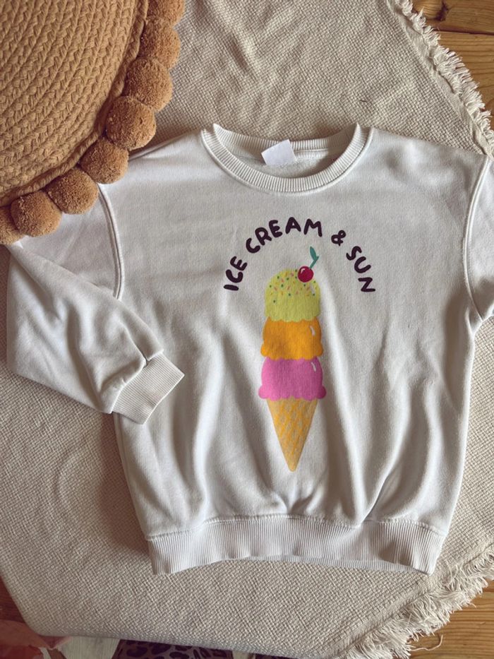 Sweat-shirt mixte Zara blanc motif glace 116 - photo numéro 1