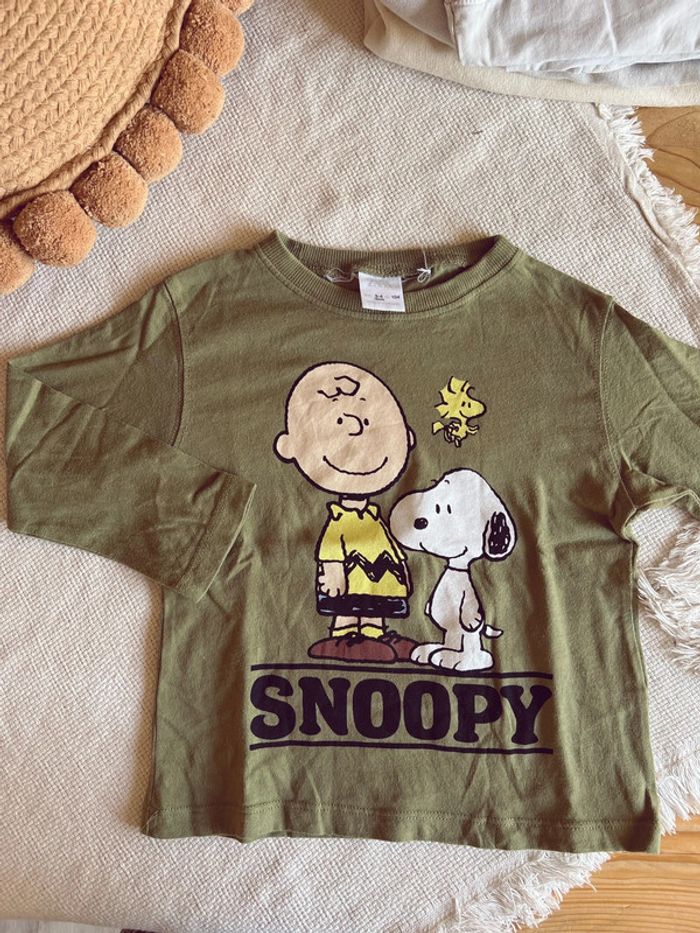 Tee-shirts manches longues Zara kaki snoopy 104 - photo numéro 1