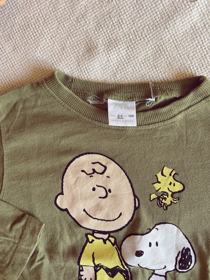 Tee-shirts manches longues Zara kaki snoopy 104 - photo numéro 3