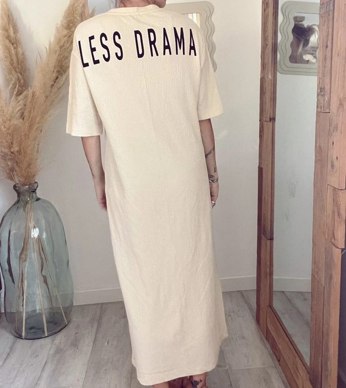 Robe longue beige écrue ZARA – collection Woman / Basic – taille S Robe élégante et minimaliste, parfaite pour un look chic et décontracté 🌾 Matière fluide légèrement gaufrée qui apporte de la texture et un joli tombé. Coupe droite, confortable et flatteuse, manches courtes tombantes. Détail original au dos avec l’inscription “LESS DRAMA” noire contrastée. Fente à l’avant pour une touche féminine et un meilleur confort de marche. 📏 Taille indiquée : S 📐 Convient aussi à un petit M (voir les photos portées pour un aperçu du rendu). 📦 Très bon état, peu portée. Envoi rapide et soigné 📦 N’hésitez pas à aller voir mon dressing pour faire des lots et économiser sur les frais de port 💌 #zara #zaraaddict #robezara #robeété #robecrème #robelongue #lookminimaliste #lessdrama #vintedlook #secondemainchic #dressingresponsable #beigestyle #lookbohème #basicchic #zaraoutfit
