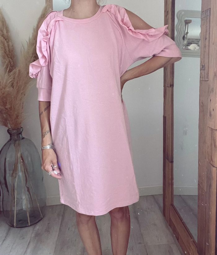 Robe rose à volants FB Sister Adorable robe rose en molleton de la marque FB Sister. Coupe droite très confortable, épaules dénudées avec jolis volants qui apportent une touche féminine et originale. Manches mi-longues, matière douce et agréable à porter. Parfaite pour un look casual chic au printemps ou à la mi-saison. 📏 Taille M, convient à un 38 📌 Très bon état Envoi rapide et soigné 📦 N’hésitez pas à aller voir mon dressing pour faire des lots et économiser sur les frais de port 💌 #roberose #lookromantique #robespring #fbsister #vêtementsfemme #secondemain #vinted #vintedfrance #lookdujour