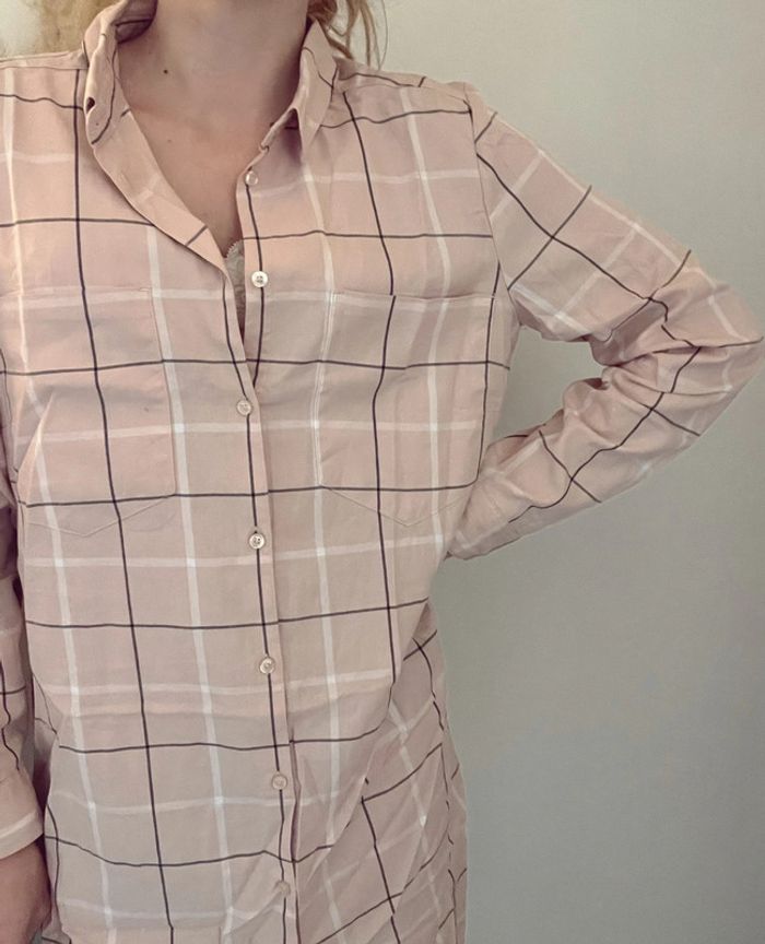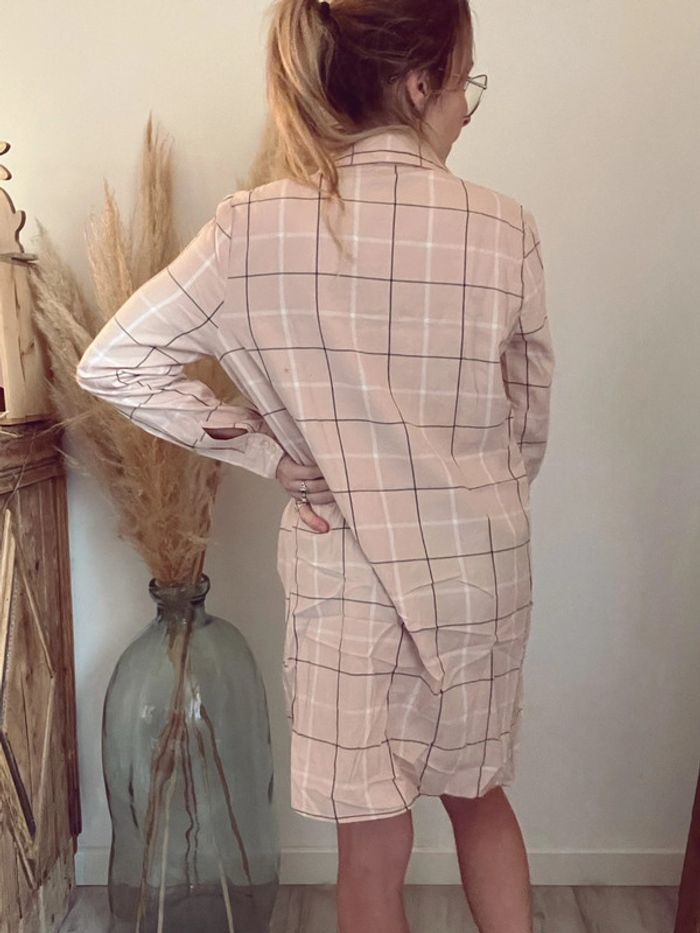 Chemise longue à carreaux rose pale bizzbee neuve - photo numéro 3