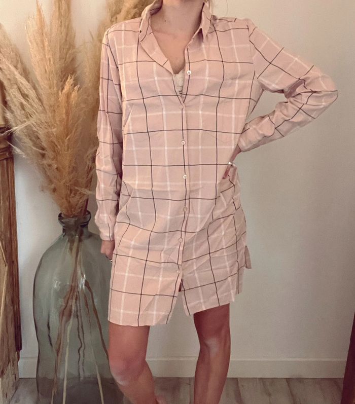 Chemise longue à carreaux rose pale bizzbee neuve