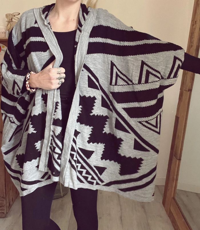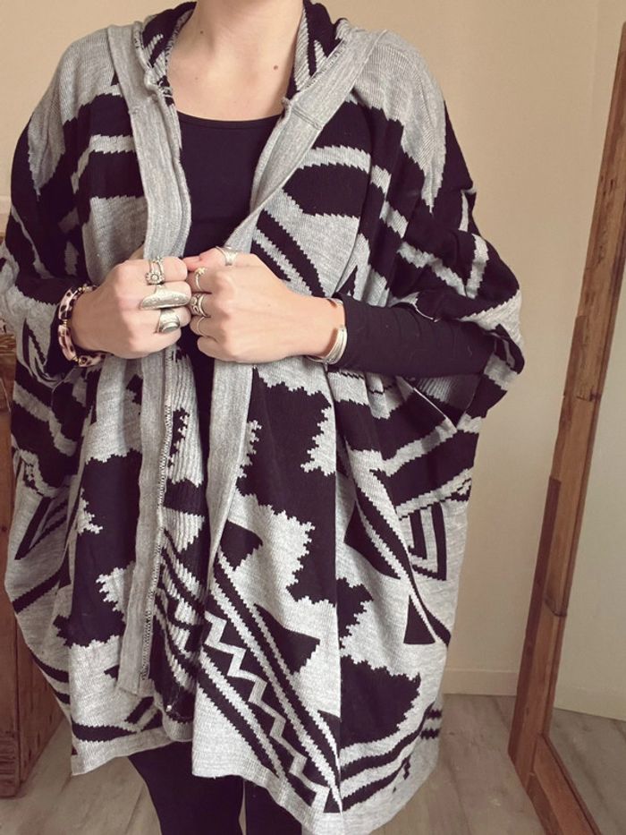 Cape / poncho / gilet cardigan gris et noir capuche - photo numéro 1