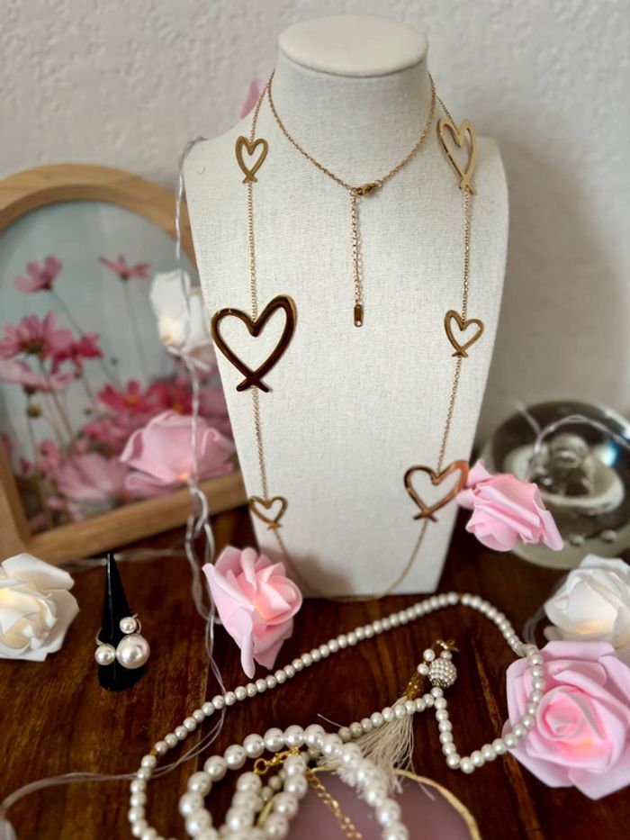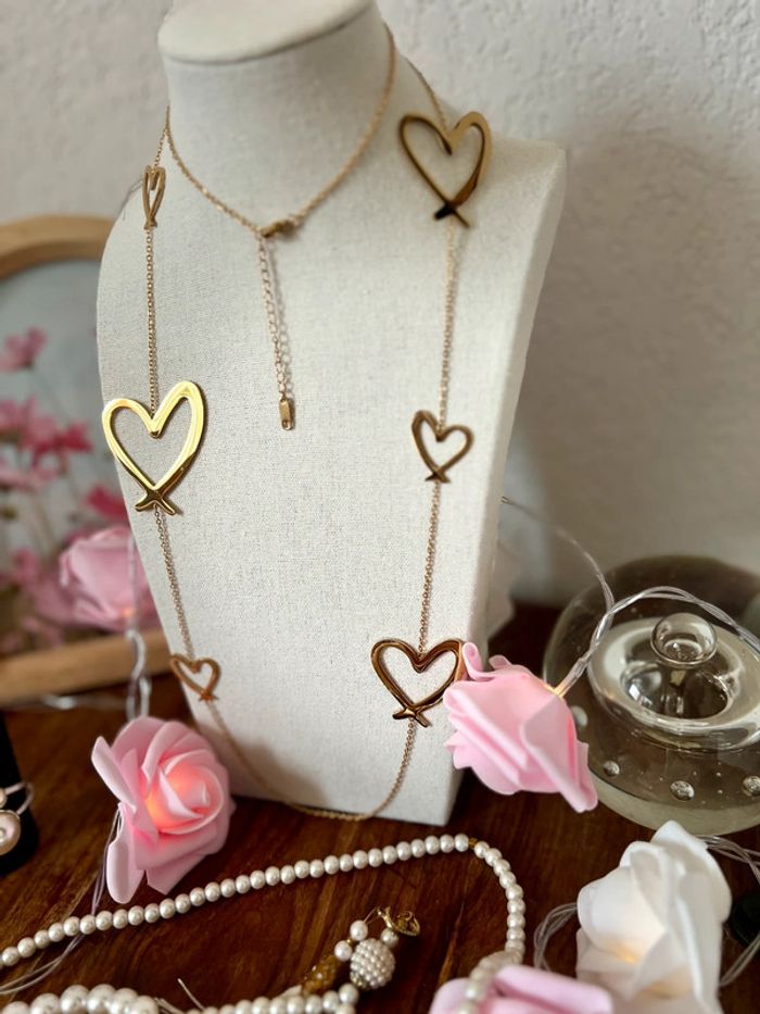 Magnifique long collier réglable cœur ❤️ en acier inoxydable neuf