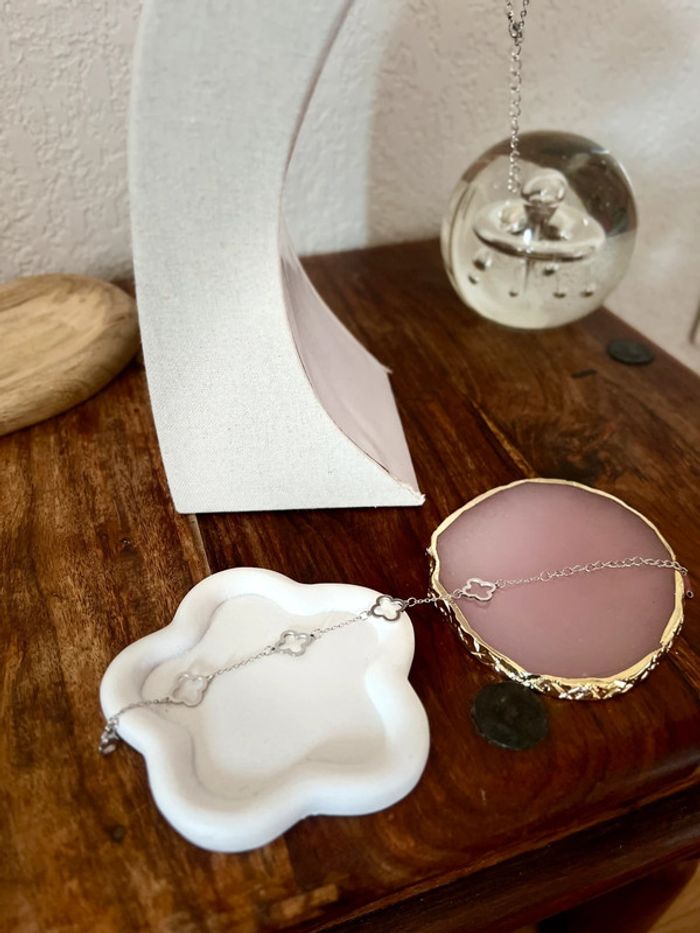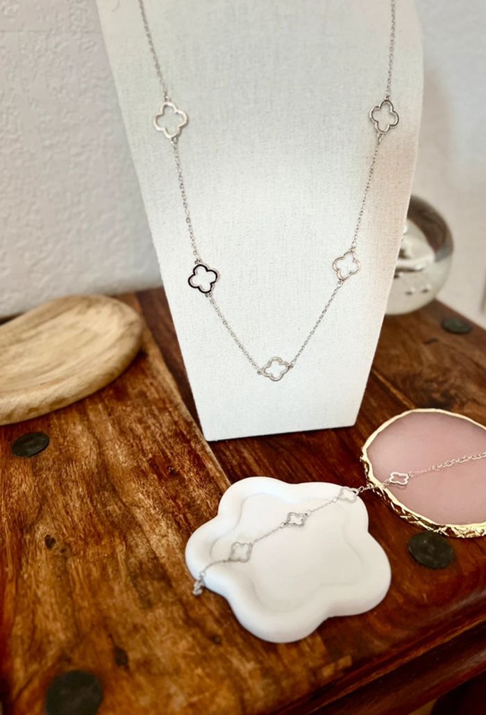 Ensemble collier et sa gourmette trèfle tout deux ajustable neufs en acier inoxydable