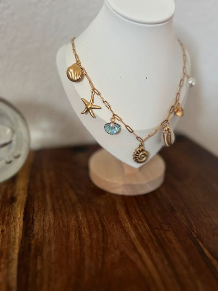 Beau collier à breloques coquillages 🐚 neuf en acier inoxydable