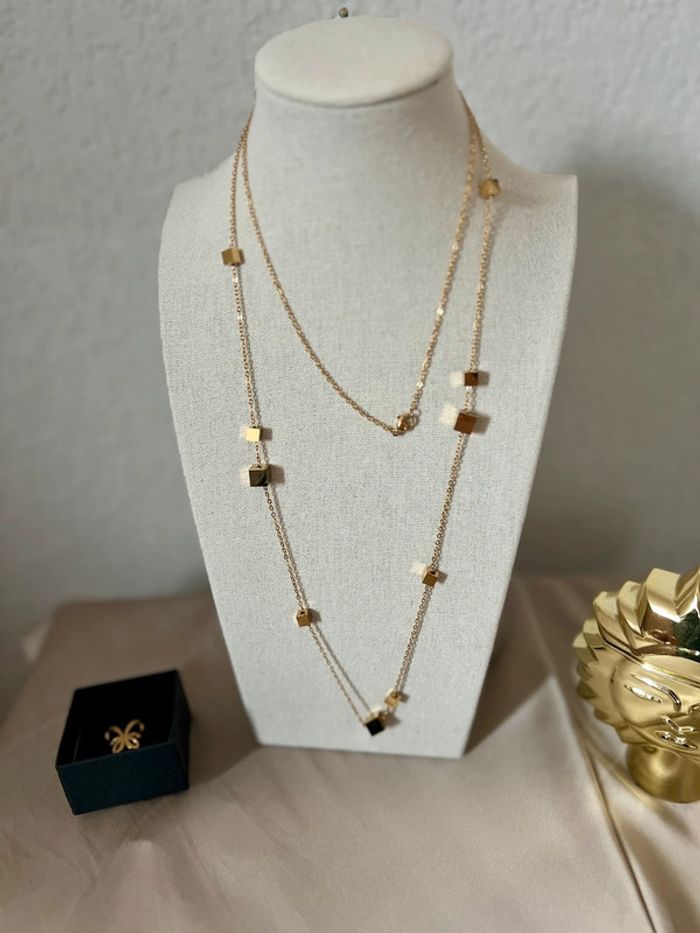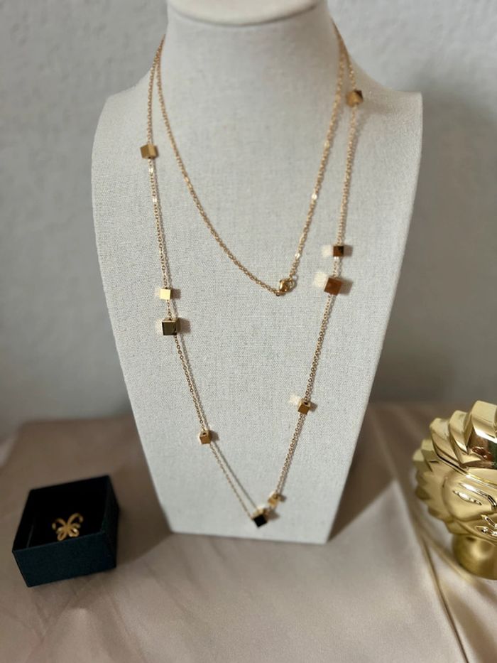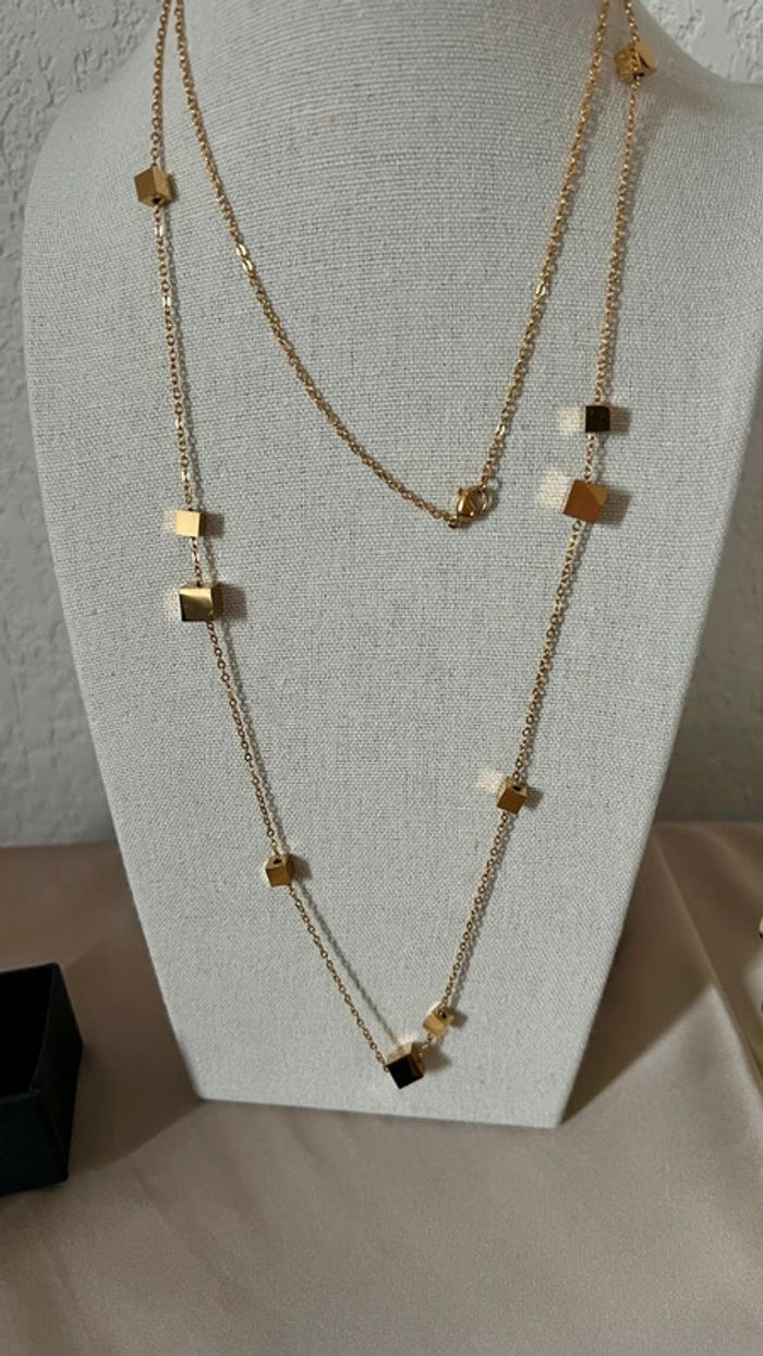Long collier de 98cm avec des cubes neuf en acier inoxydable