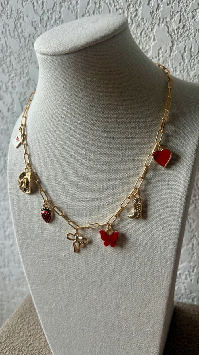 Collier à breloques rouge neuf