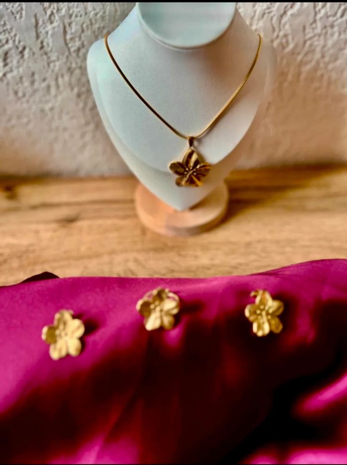 Ensemble collier et bague ajustable fleur 🌸 en acier inoxydable neufs