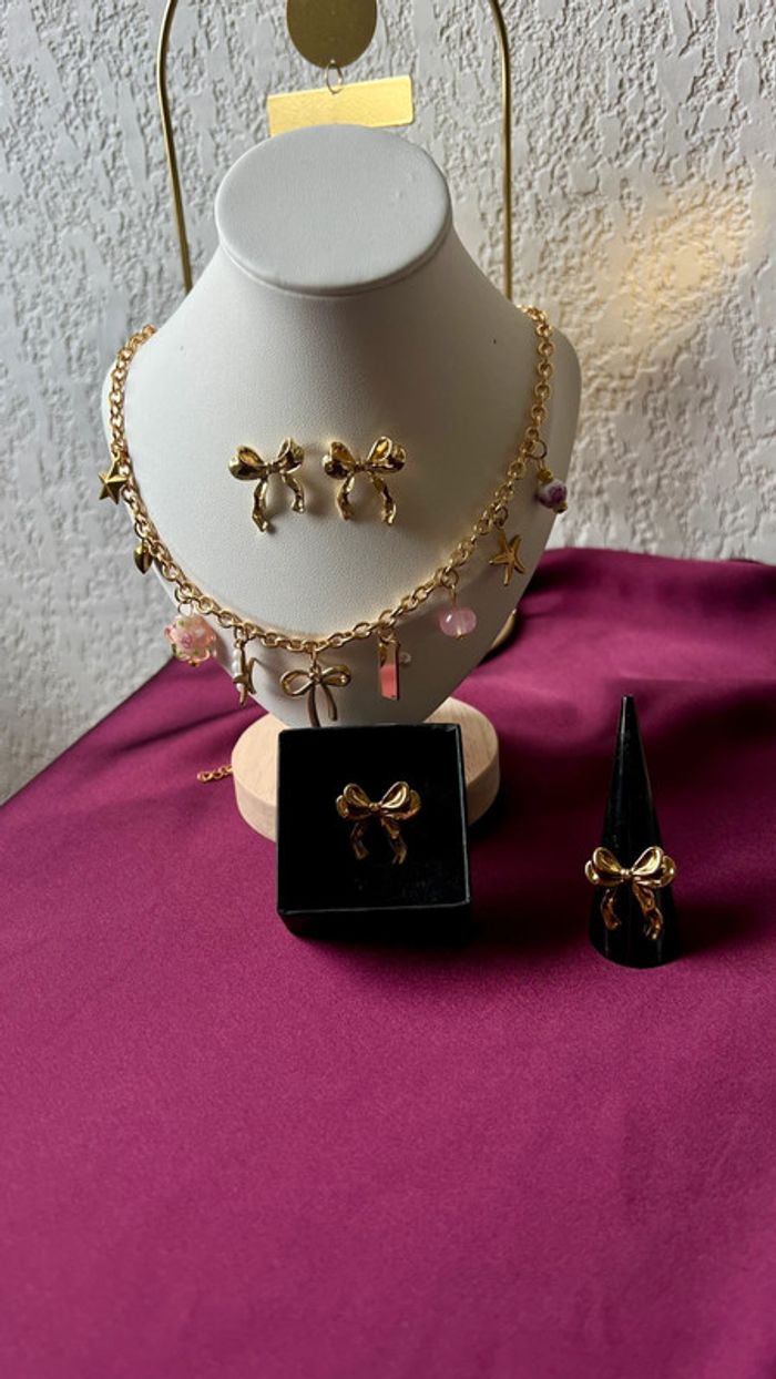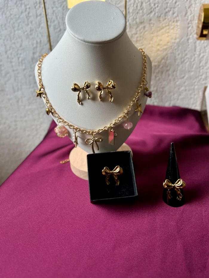 Collier à breloque noeud bague boucles d'oreilles - photo numéro 1