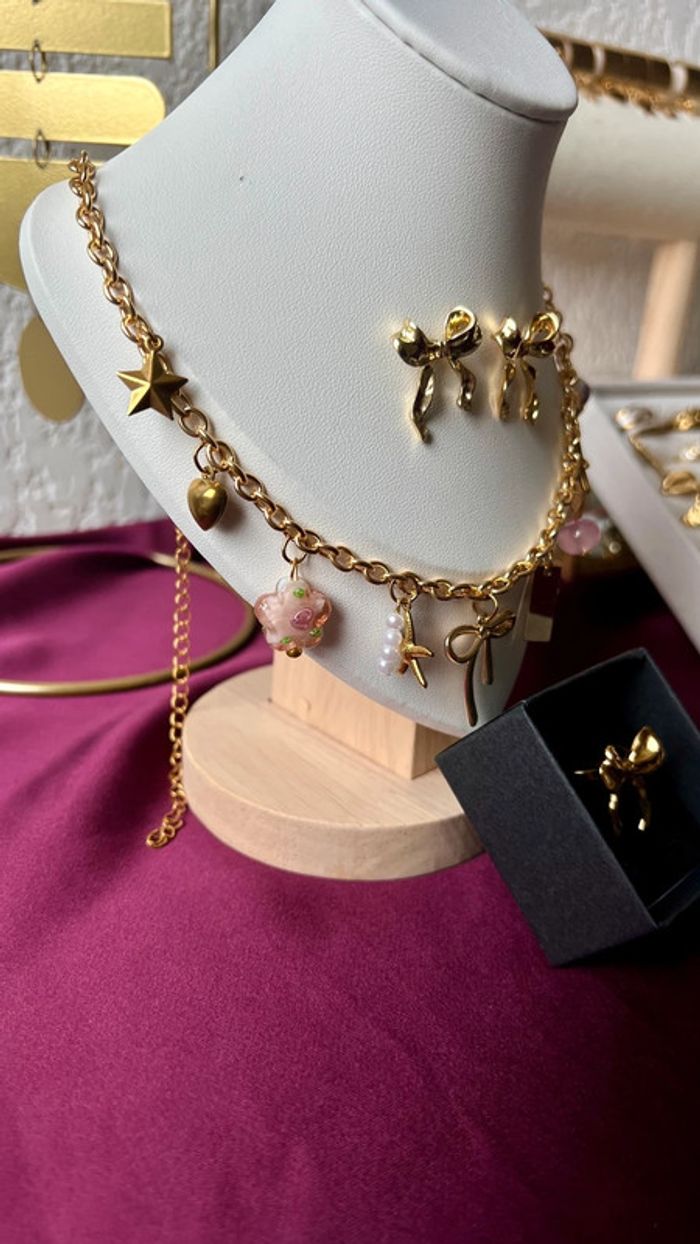 Collier à breloque noeud bague boucles d'oreilles - photo numéro 5