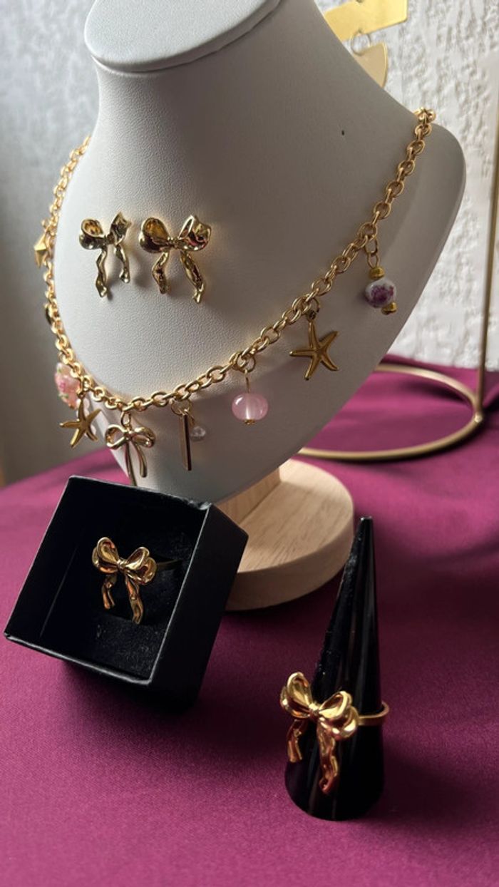 Collier à breloque noeud bague boucles d'oreilles - photo numéro 2