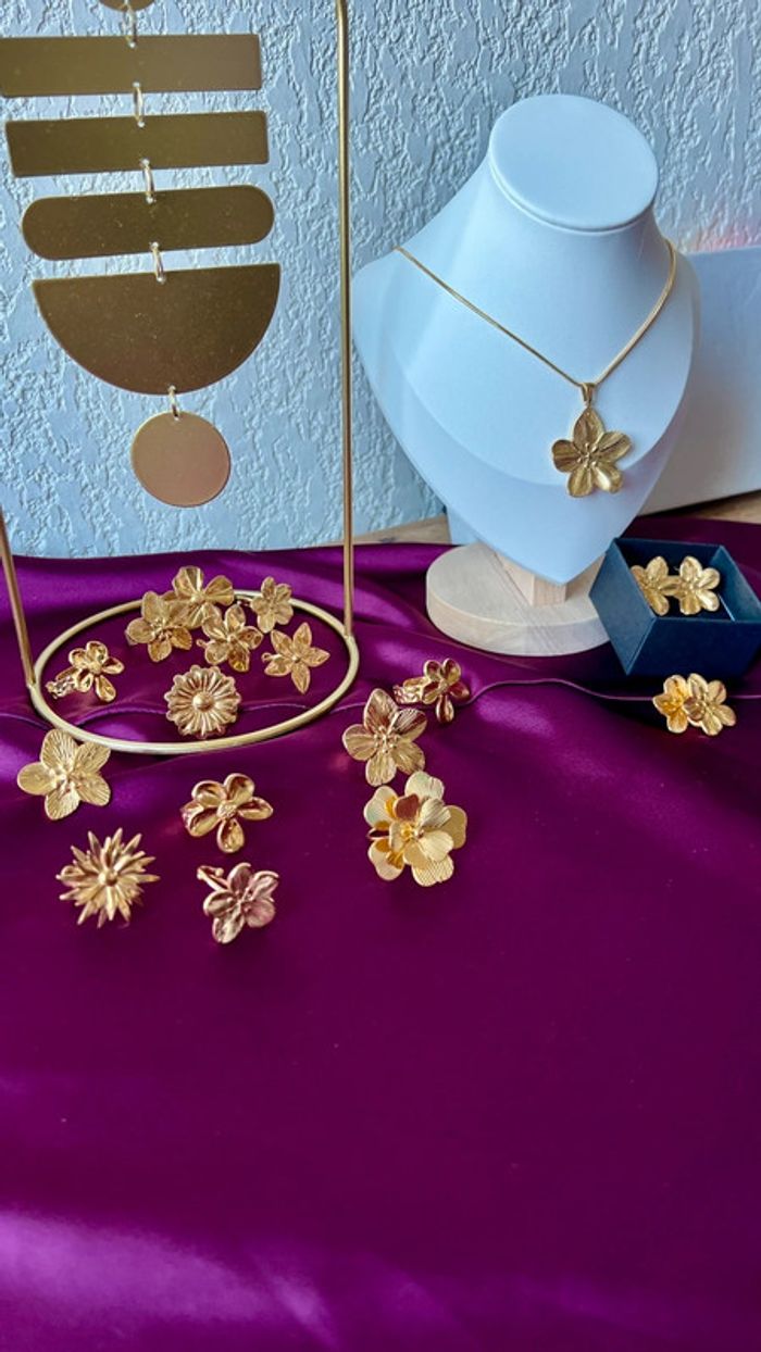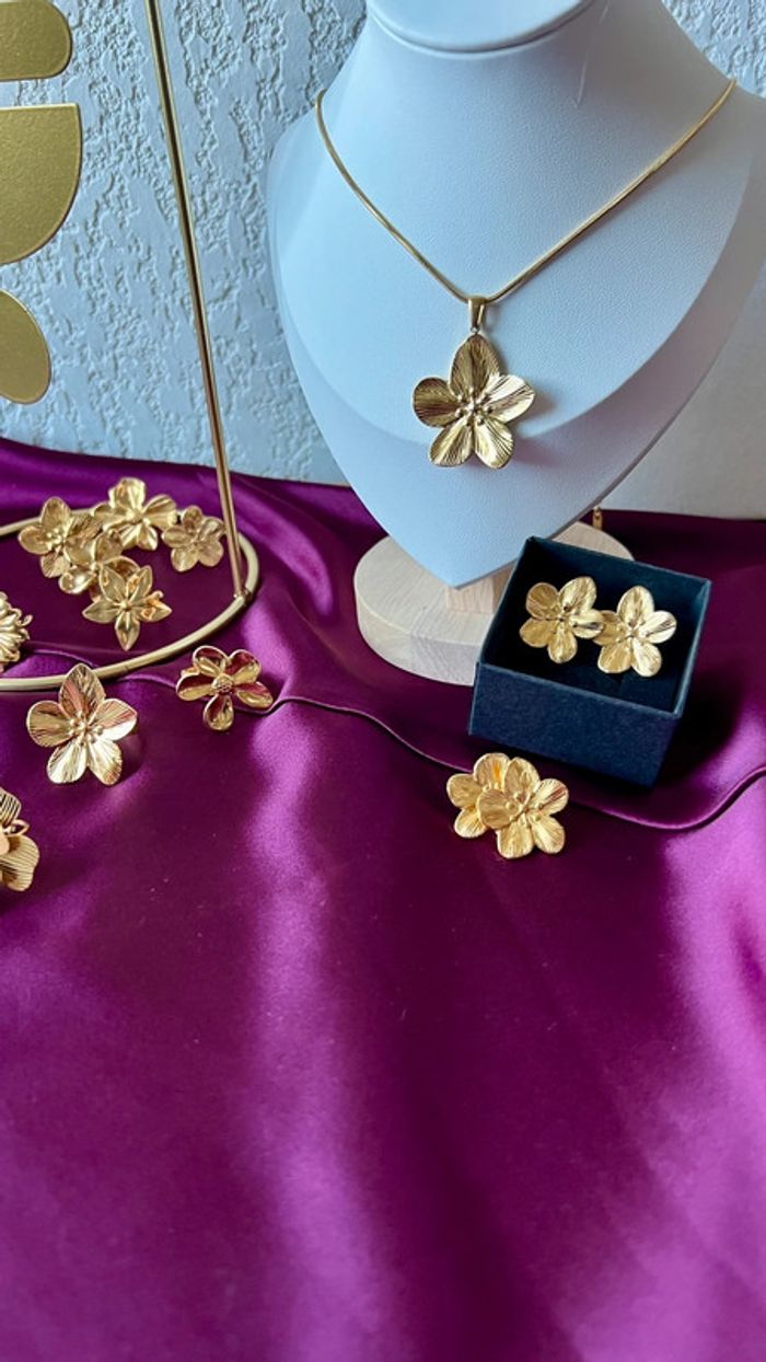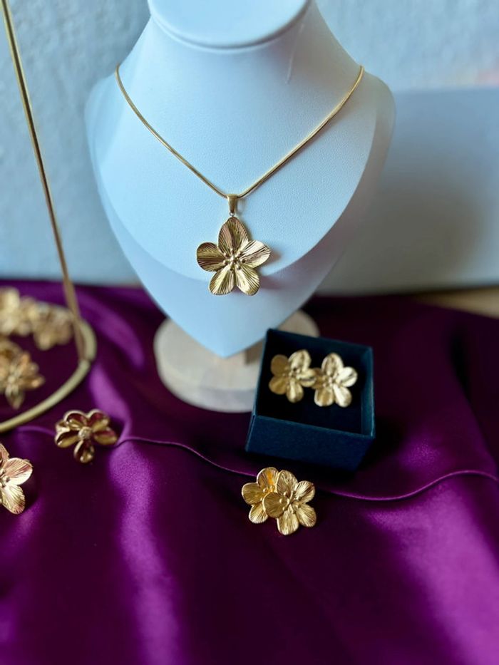 Ensemble de bijoux bagues ajustables fleur collier boucle d'oreilles à composer en acier inoxydable neufs