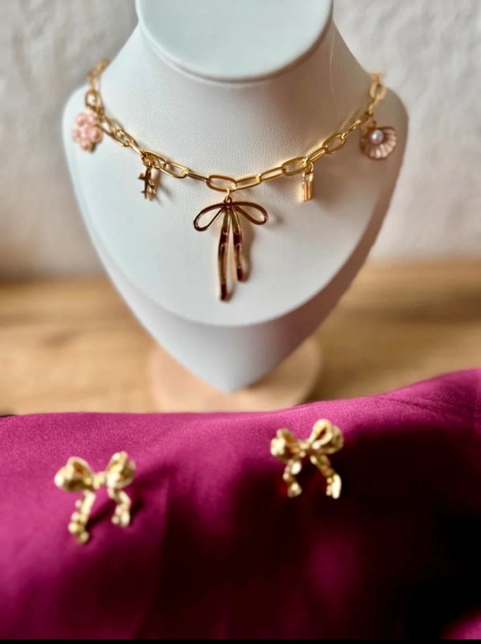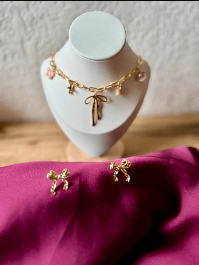 Ensemble collier noeud et boucles d'oreilles en acier inoxydable neuf