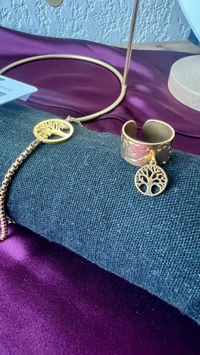 Ensemble collier boucle bague arbre de vie - photo numéro 1