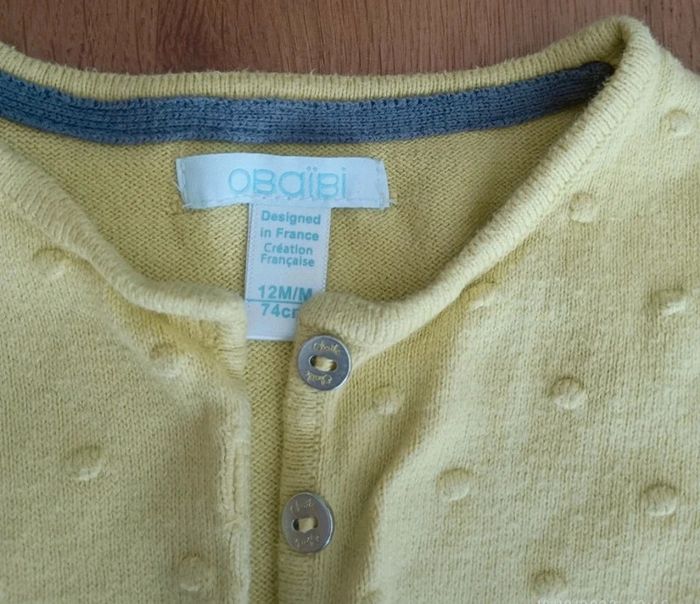 Gilet Obaibi taille 1 an en très bon état couleur vert anis - photo numéro 3