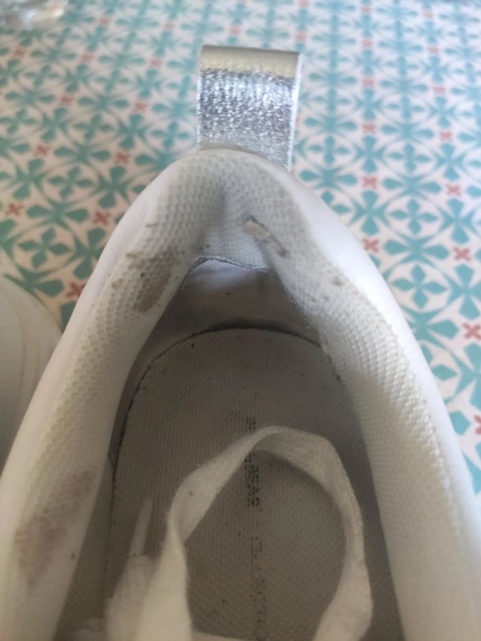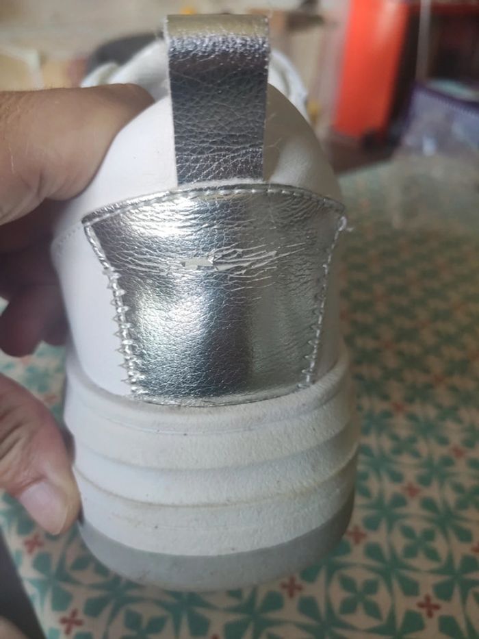 Portées peu de temps, semelles impeccables, juste intérieur au niveau du talon un peu usé car elles sont trop grandes pour moi et il y avait des frottements. Pointure 39. Blanc et argent. Pull & Bear #vulariPullBear