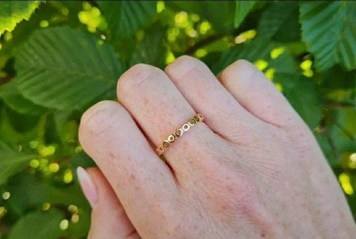 • Jenny, notre jolie bague alliance fine ajourée en plaqué or jaune 18 carats. • Très jolie accumulée, vous pouvez la superposer avec 3 ou 4 bague fines. • Largeur: 3 mm. • Plaqué or: Nos bijoux en plaqué or sont faits sur une base de laiton et recouverts d'or 18 carats à 3 microns sans dispersion. Cela signifie que nous garantissons 3 microns d'or sur n'importe quelle partie du bijou. Sur la plupart de nos bijoux empierrés, nous montons à 5 microns d'or 18 carats. Pour finir, une finition avec de l'or 24 carats est réalisée afin de donner un plus bel éclat aux bijoux. • Résiste à l'eau douce et ne noircit pas. • Sans nickel, ni plomb, ni cadmium et hypoallergénique. • Livrée dans un joli pochon et une boite Moon and Sun Bijoux, prête à offrir !