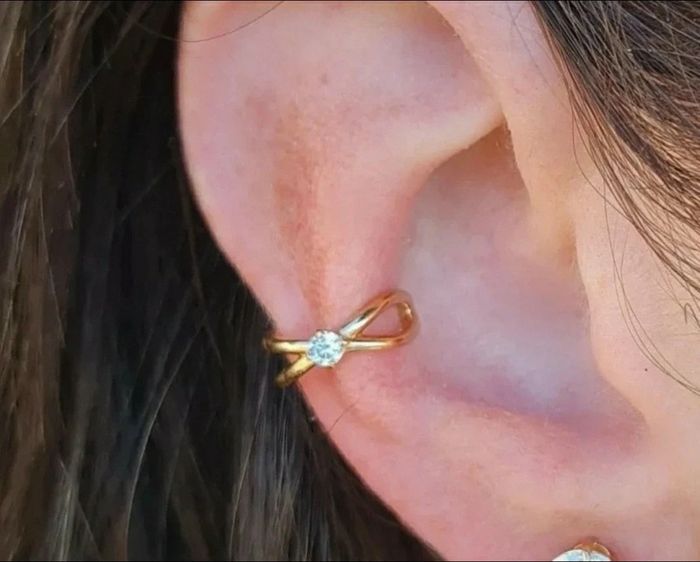 Bague d'oreille ear-cuff faux piercing sans trou plaqué or et zirconium