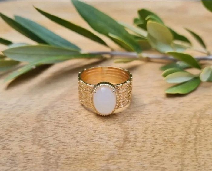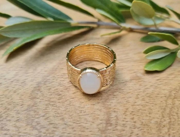 Grosse bague large mariage vintage plaqué or et pierre de lune taille 52 - photo numéro 1