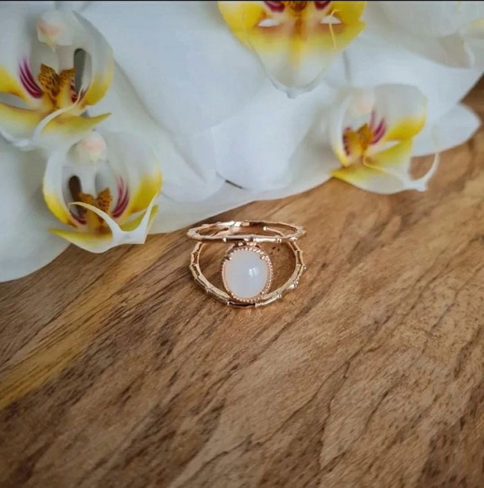 Bague ajourée double rangs plaqué or et pierre de lune taille 58