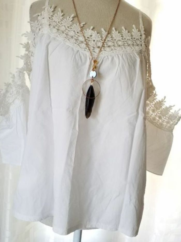 Blouse manches épaules dénudés avec broderie taille M très bon état