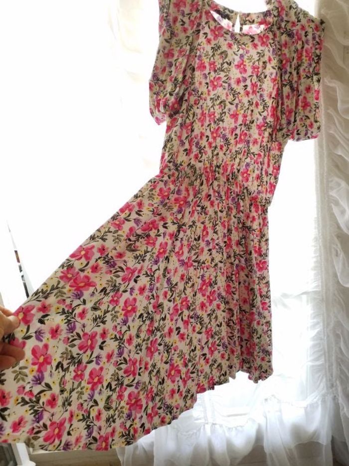 Jolie robe florale taille élastique longueur 102 cm taille 46 neuve