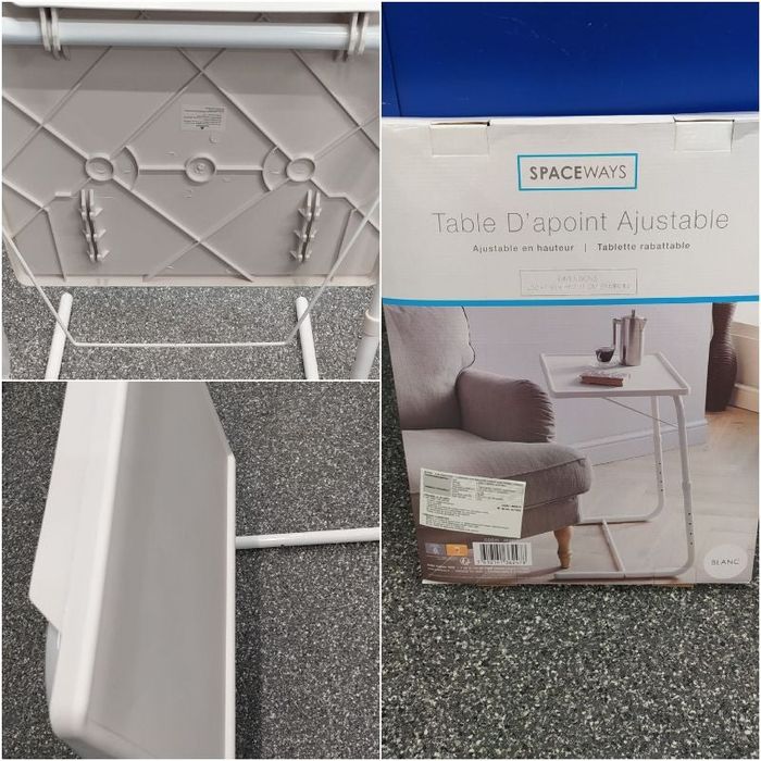 Table d'appoint ajustable blanche bon état plus le carton d'emballage