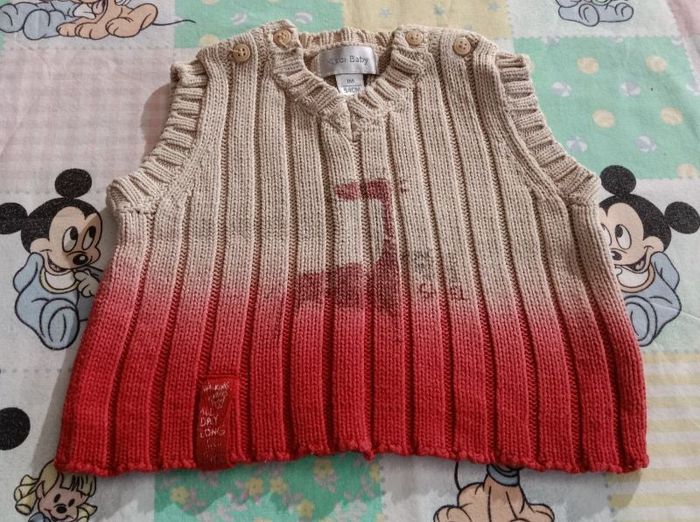 Pull sans manches en très bon état 100% coton Couleur: crème/ rouge Taille: 1 mois/ 54cm