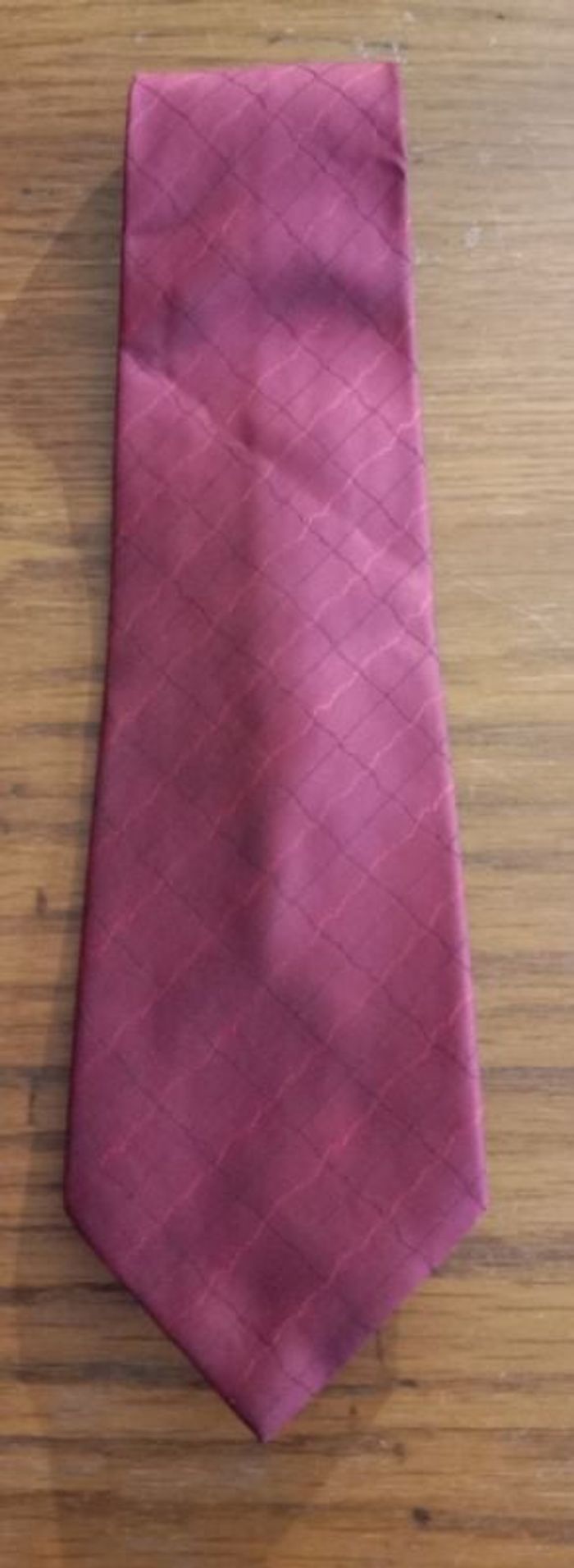 Cravate en très bon état Longueur: 143,5 cm Largeur : 10,5 cm Couleur : rouge-bordeau Motifs : carré/ rayures 100% polyester Marque : Yves Dorsey