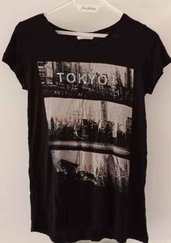 ⚠️ Il n' y a pas d étiquette taille alors se référer aux mesures, merci⚠️ Tee shirt en bon état Matière légèrement élastique Largeur à plat sous aisselles : 37 cm Longueur totale : 59 cm Couleur: noir Taille: 34/36
