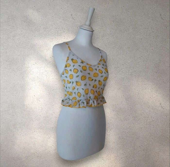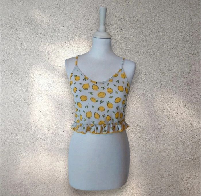 Crop-top débardeur court motifs citrons taille S - photo numéro 1
