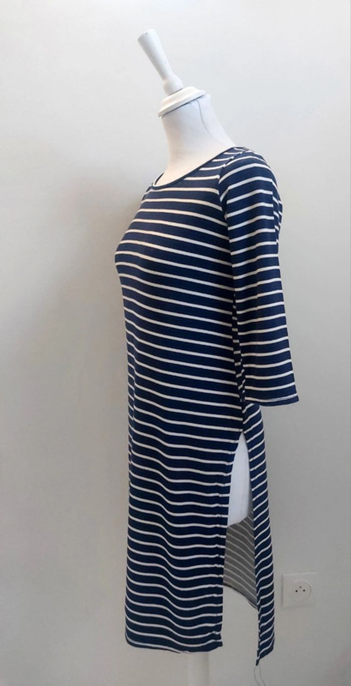 Tunique longue fendue robe de plage marinière taille S - photo numéro 3