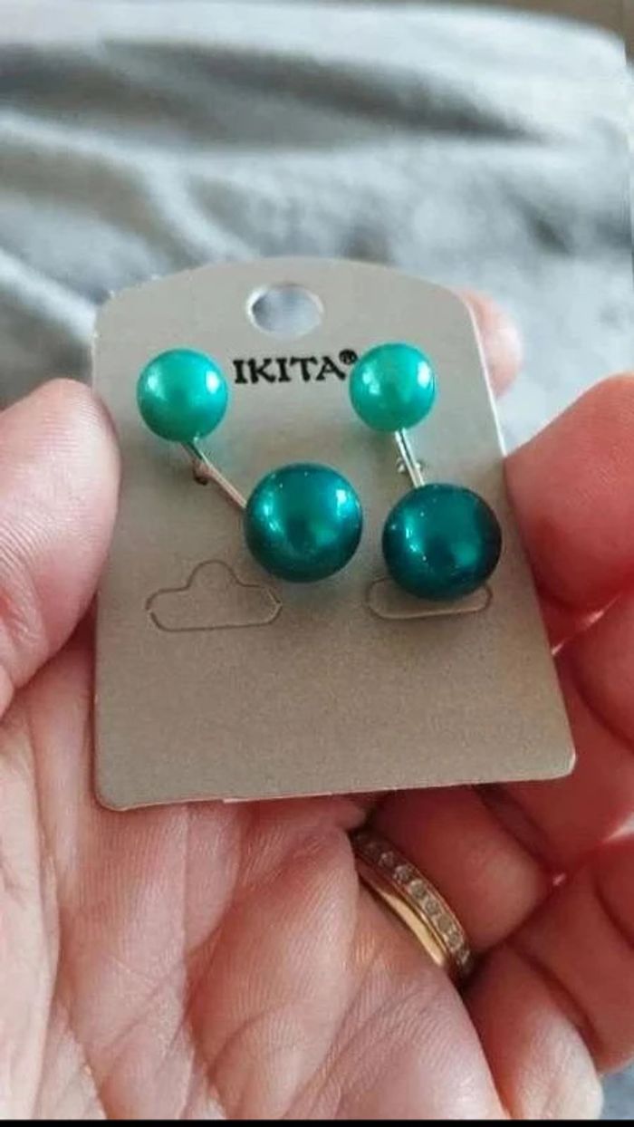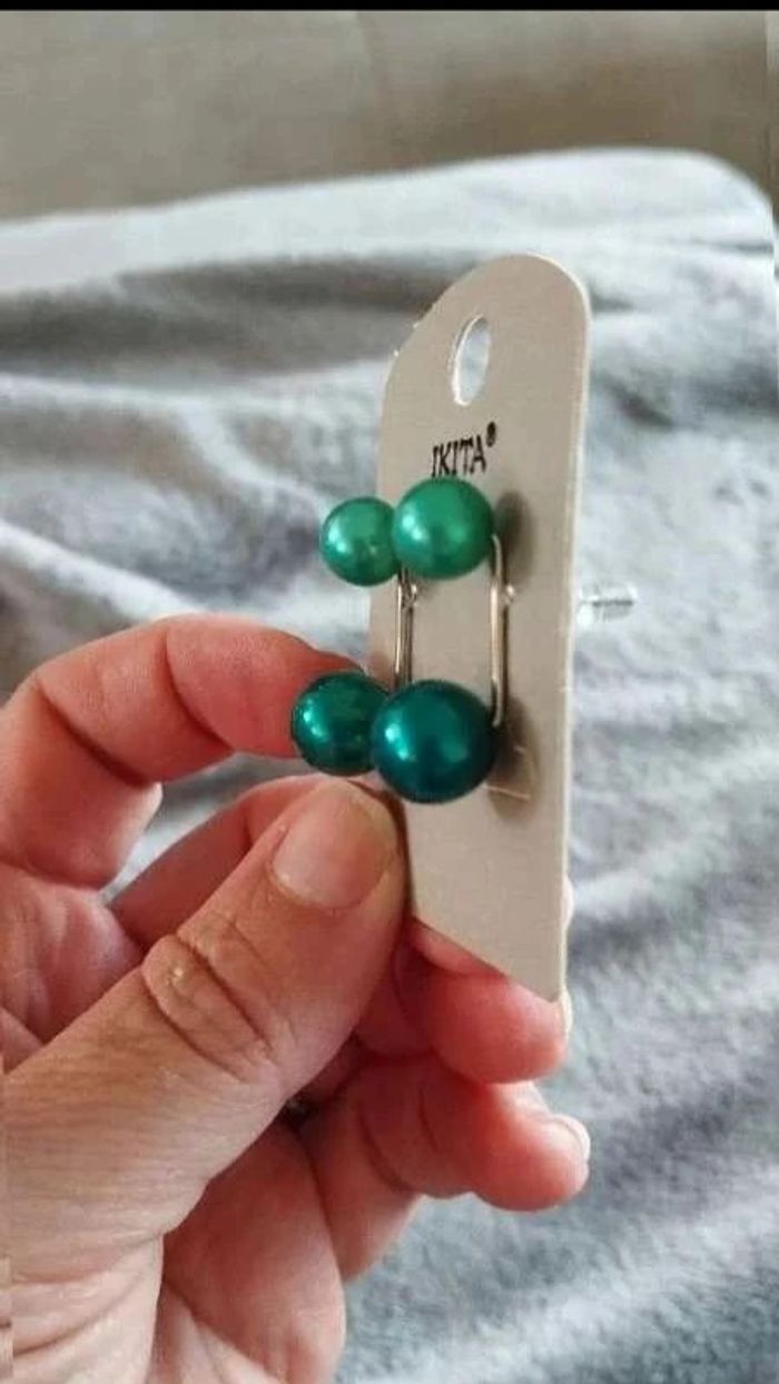 Boucles d'oreilles  Ikita, fantaisie verte,  pour  femme  -  tendance et glamour - photo numéro 3